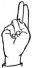 На ћирилици написано КОСТАДИН ЏАТИЋ састоји се из 13 слова [?]. Исписано ћириличном једноручном азбуком за глувонеме: